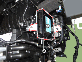 Ослабьте крепежные гайки, затем снимите блок управления кузовом (А).