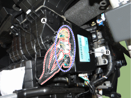 Отсоедините разъем (А), затем снимите модуль управления кузовным оборудованием (В).