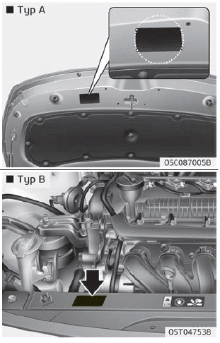 Табличка "Одобрение типа", табличка давления в шинах/спецификация,