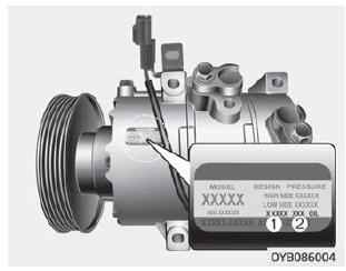 Маркировка компрессора кондиционера содержит информацию о типе компрессора, с которым Ваш автомобиль оборудован, т.е. ЧАС. Модель, Артикул производителя, заводской номер, хладагент (1) и охлаждающее масло (2).