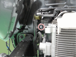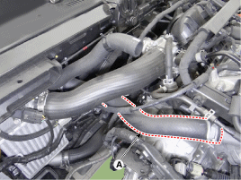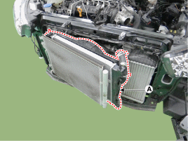 Отсоедините шланг (А) и трубопровод от расширительного бачка, затем от расширительного бачка. и шланг от вентилятора охлаждения.