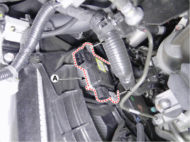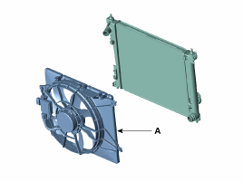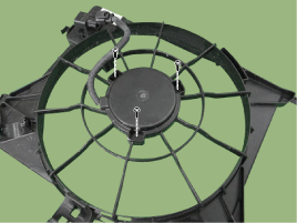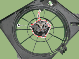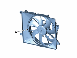 Снимите двигатель вентилятора (А) с кожуха вентилятора радиатора.