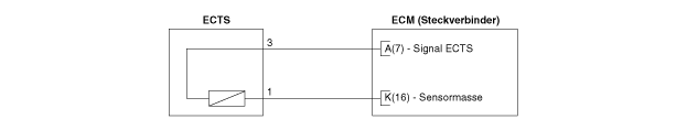 Датчик температуры охлаждающей жидкости (ECTS) расположен в канале охлаждения в головке блока цилиндров.