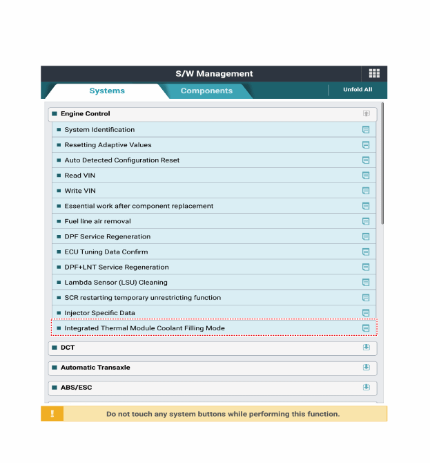 Запустите «Режим заполнения охлаждающей жидкостью интегрированного теплового модуля».