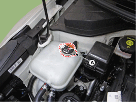 Открутить пробку герметика и расширительный бачок до отметки (A) Заполните «MAX» (или «F») охлаждающей жидкостью. |