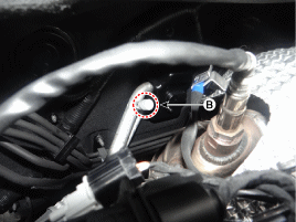 Станция технического обслуживания (A), сертифицированная для хладагента R-1234yf в соответствии с к порту высокого давления (B) в соответствии с инструкциями производителя.