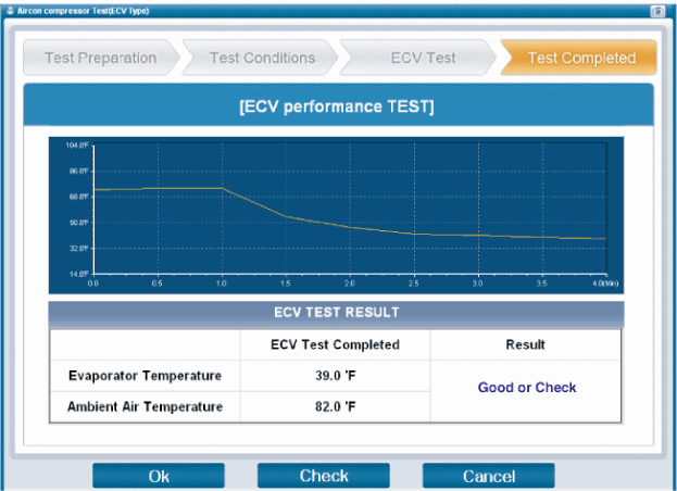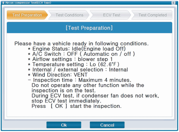 Перед проверкой компрессора ECV проверьте наличие других кодов неисправностей. подарок. Если это так, сначала решите эту проблему. Является Если нет, нажмите кнопку «ОК», чтобы продолжить.
