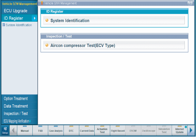 Подключите KDS к автомобилю и выполните «Тест компрессора кондиционера (тип ECV)». выбирать. [ECV1]