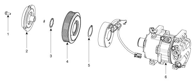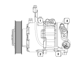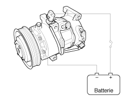 Проверьте работу магнитной муфты. Боковые клеммы компрессора на положительном полюсе аккумулятора (+) и подсоедините отрицательную клемму аккумуляторной батареи (-) к корпусу компрессора. Проверьте рабочий шум магнитной муфты, чтобы проверить ее состояние.
