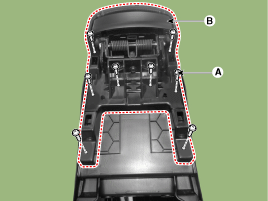 Ослабьте крепежные винты (А) и снимите подлокотник консоли (В).