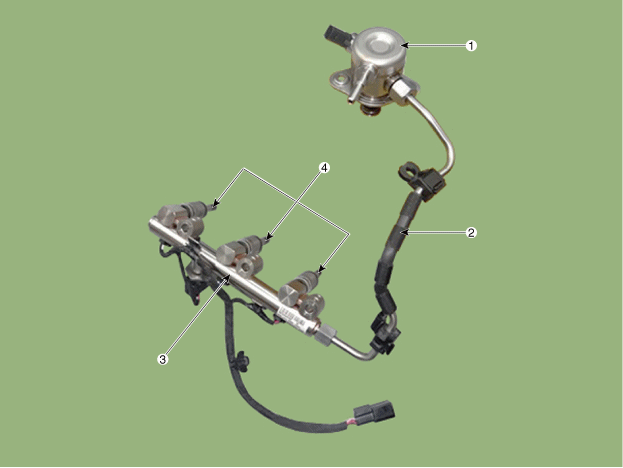 Если предохранитель топливного насоса высокого давления, топливопровод линия подачи или инжекторный клапан сразу после отключения снятый с двигателя, он может быть поврежден высоким давлением, разбрызгивание топлива может привести к травме. Остаточное давление в топливной магистрали осушать. Процедура «Сброс остаточного давления топлива» обратите внимание перед любыми компонентами топливной системы высокого давления продлевать. |
