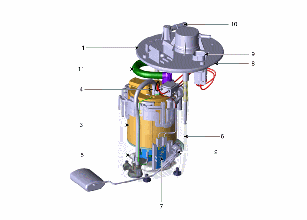8. Прокладка пластины топливного насоса 9. Топливный насос двигателя и разъем датчика 10. Подключение подачи топлива 11. Трубка подачи топлива |