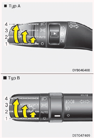 (3. Stellung) sind Scheinwerfer, Heckleuchten,