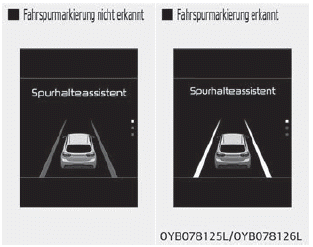 Der Spurhalteassistent (LKA) солидный beitragen, dass der Fahrer die Fahrspur nicht verlässt. Дер Фарер darf sich jedoch nicht ausschließlich auf das System verlassen, sondern muss während der Fahrt immer die Fahrbahnbedingungen überprüfen.