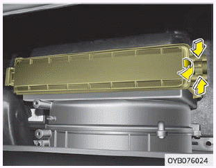 Der Luftfilter der Klimaanlage muss Laut Wartungsplan ersetzt werden. Wenn das Fahrzeug über einen längeren Zeitraum в Großstädten mit hoher Luftverunreinigung oder auf unbefestigten, staubigen Straßen eingesetzt wird, muss der Filter häufiger geprüft und früher ersetzt werden. Венн Си den Luftfilter der Klimaanlage ersetzen, ersetzen Sie ihn auf folgende Art und Weise und gehen Sie sorgfältig vor, гм eine Beschädigung anderer Bauteile zu вермейден.