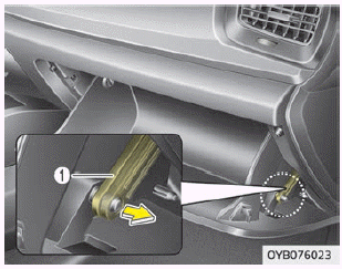 2. Ziehen Sie bei geöffnetem Handschuhfach дем Stützband (1).