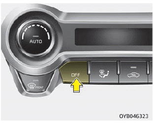 Drücken Sie die Taste OFF, um die Klimaanlage auszuschalten. Die Frischluft-/ Umlufschaltung können jedoch weiterhin bedient werden, solange die Zündung eingeschaltet ist.