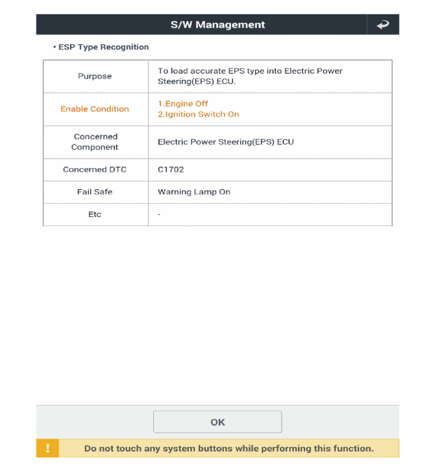 "EPS-Typenerkennung" am KDS-Auswahlbildschirm wählen, dann OK wählen. |