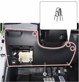 Armaturenbrett-Seitenverkleidung [LH] (A) mit einem Ausbauwerkzeug entfernen.