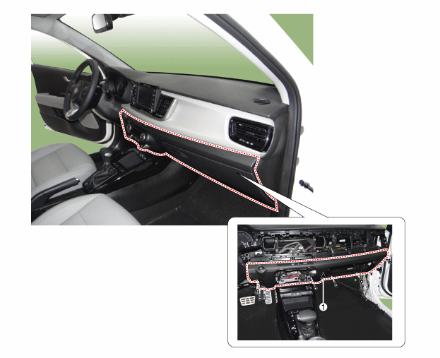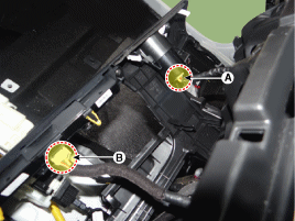 Befestigungsschrauben lösen, dann Armaturenbrettverkleidung (A) auf Beifahrerseite энфернен.