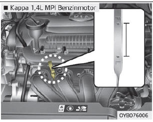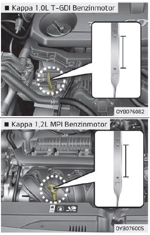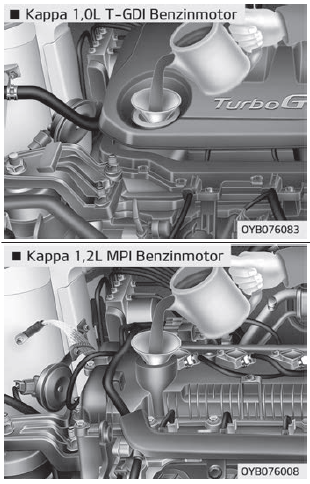 Gehen Sie vorsichtig vor, damit Sie beim Prüfen des Motorölstands und Бейм Нахфюллен фон Моторёльден Kühlerschlauch nicht berühren. Эр kann so heiß sein, dass Verbrennungsgefahr бестехт.