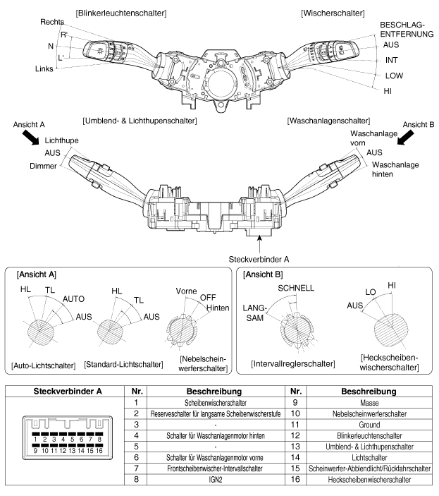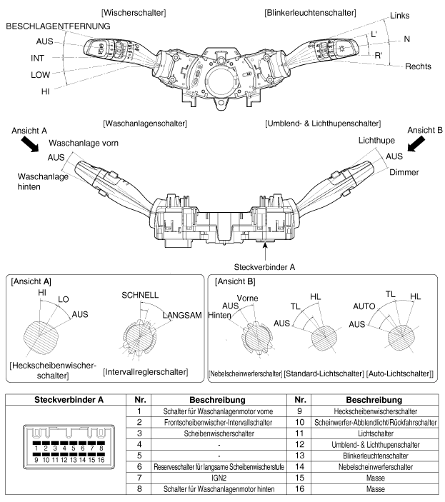 Steckverbinder (A) des Kombischalters abziehen.