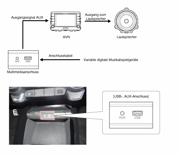 Der Multimedia-Anschluss an der Oberen Konsolenabdeckung ist für Kunden gedacht,