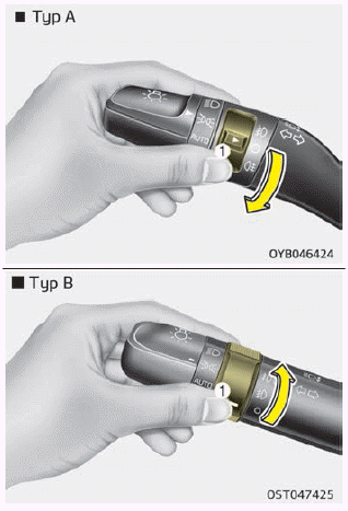 Um die Nebelschlussleuchte einzuschalten, drehen Sie den Nebelschlussleuchtenschalter (1) в штампе Положение ВКЛ, венн das Licht eingeschaltet ist.