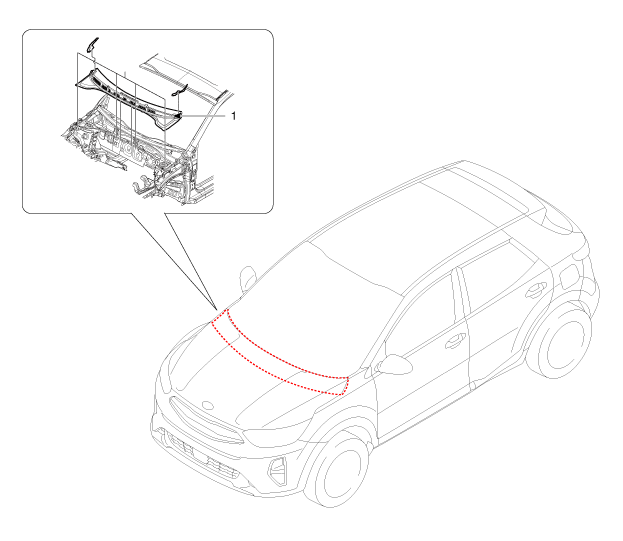 Kia Stonic: Karosserie (Innen und Außen) / Obere Windlaufabdeckung