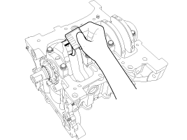 2 Schrauben, Pleuellagerdeckel und untere Lagerschale abbauen.