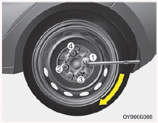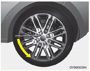 Ziehen Sie nun die Radmuttern mit dem Radmutternschlüssel in der in der Abbildung gezeigten Reihenfolge fest. Stellen Sie sicher, dass der Radmutternschlüssel bis zum Anschlag auf die Radmutter aufgeschoben ist. Стеллен Sie sich nicht auf den Griff des Radmutternschlüssels und verwenden Sie kein Рор, um den Radmutternschlüssel zu Верленгерн. Ziehen Sie alle Radmuttern рингсум фест. Prüfen Sie anschließend nochmals alle Radmuttern auf festen Сиц. Lassen Sie die Anlage nach einem Радвехзель фон Эйнер Фахверкштатт überprüfen. Kia Empfiehlt Den Besuch eines Kia-Vertragshändlers/Servicepartners.