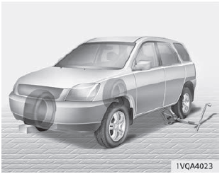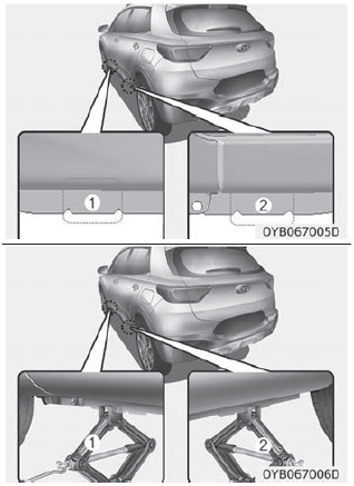 Um das Verletzungsrisiko zu reduzieren, benutzen Sie zum Anheben des Fahrzeugs ausschließlich den mitgelieferten Wagenheber und die vorgegebenen Aufnahmepunkte und heben Sie das Fahrzeug niemals and anderen als den vorgesehenen Stellen ан.