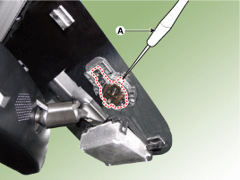 Die Schlossfalle der Abdeckung nicht durch übermäßige Krafteinwirkung бесшадиген. Zum Entfernen der Schlossfalle die Schlossfalle zur Seite ziehen. Dazu einen kleinen Schraubendreher (A) (-) in die Bohrung in der Abdeckung стекен.
