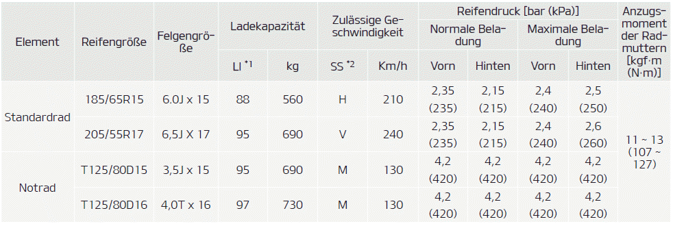 Kia Stonic: Технические данные и справочная информация / Reifen und Räder
