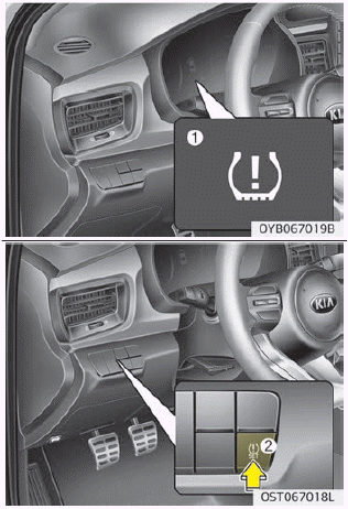 Warnleuchte für niedrigen Reifendruck (1) / КОМПЛЕКТ СКДШ (2)