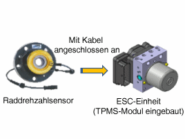 Mit Hilfe des Raddrehzahlsignals vom ESC analysiert das System den Drehradius der Reifen und Veränderungen in der Reifensteifigkeit, um einen Druckverlust zu эркеннен.