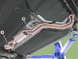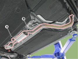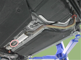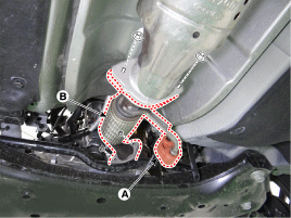 Gummiaufhängung (A) vom Mittelschalldämpfer entfernen. |