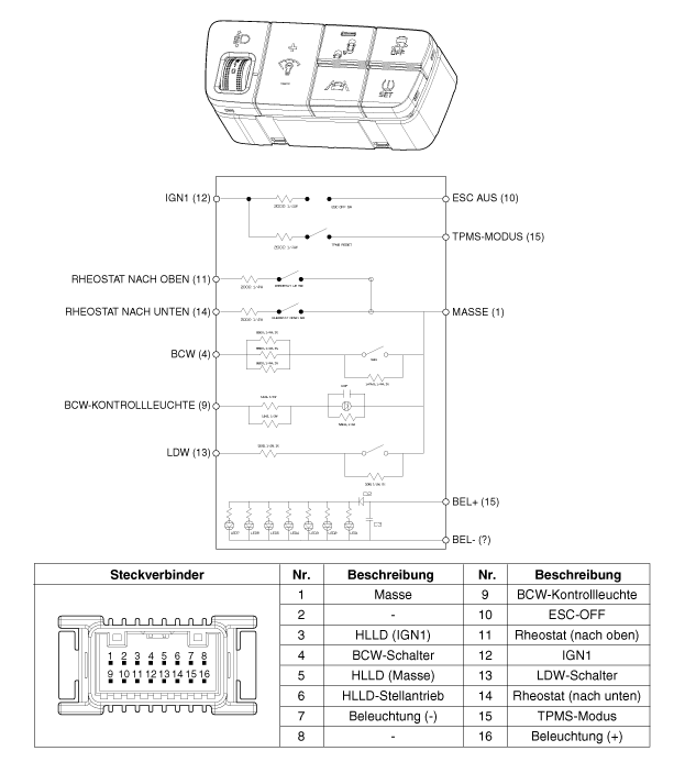Steckverbinder des BCW-Schalters vom seitlichen Armaturenbrettschalter абзиен.