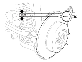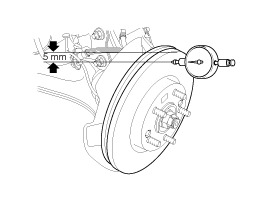 Ein Lehre mit Anzeige ок. 5 мм (0,2 дюйма) von der außeren Umfang der Bremsscheibe ansetzen und den Rundlauf der Scheibe messen. Тормозной беншлаг -Verschleißgrenze: 0,05 мм или венигер (neu)
