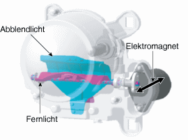 : Das Licht beleuchtet den begrenzten Abblendlichtstrahls, indem das Licht entsprechend abgeschirmt wird.