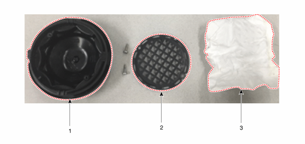 Feuchtigkeitsabsorbsmittel (A) aus der Staubschutzkappe (B) entfernen.