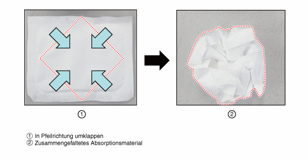 Feuchtigkeitsabsorbsmittel (A) mit zusammengefalteten Seiten einsetzen.