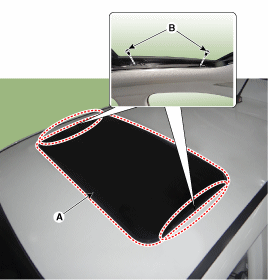 Die Stufenhöhe zwischen Dachblech (A) и Scheibendichtungsprofil (B) prüfen und bei Bedarf einstellen.