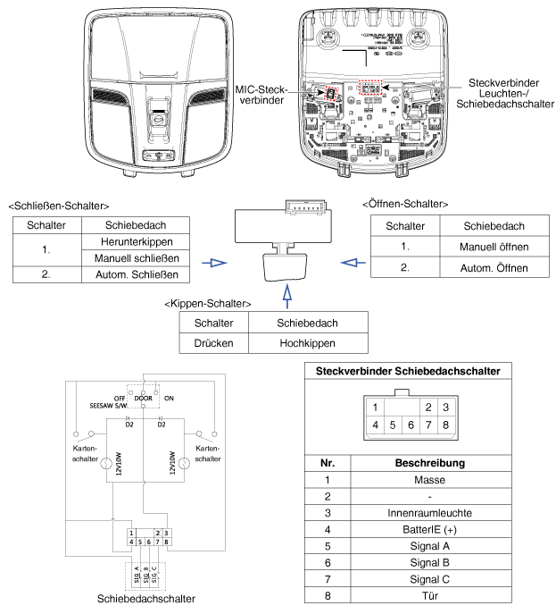 Dachleuchte abbauen. (Siehe Lichtanlage - "Dachkonsolenlampe") |