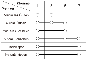 Zwischen den Relaisklemmen auf Durchgang prüfen. Wenn der Durchgang nicht der aufgeführten Vorgabe entspricht, den Panoramadachschalter ersetzen.