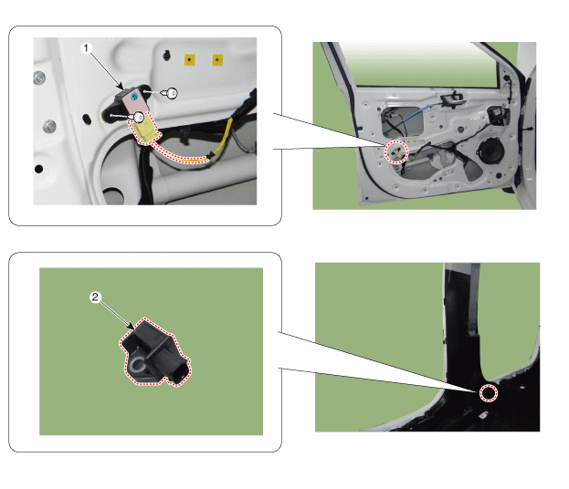 Das Seitenaufprallsensor (SIS)-System besteht auf zwei Druck-Seitenaufprallsensoren (P-SIS), die in der Mitte der beiden Vordertürmodule (ссылки и права) untergebracht sind, sowie zwei SIS, die sich in den B-Säulen (ссылки и rechts) befinden, und zweihinteren SIS, die sich in den C-Säulen (ссылки und rechts) befinden. |