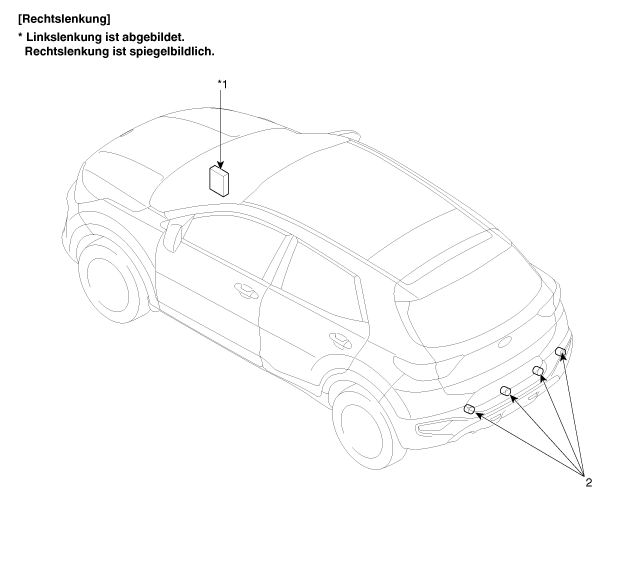 Die Funktion für Einpark-Abstandswarnung hinten ist in das BCM (Karosseriessteuermodul) энгебаут. |