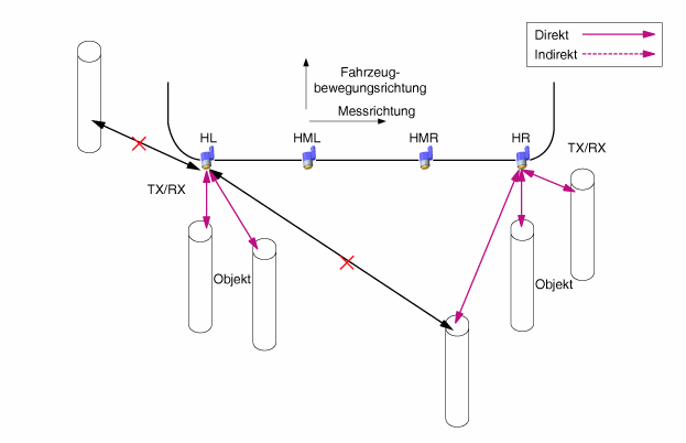 Das PDW-R-System лучше, чем PDW-R-Sensoren, die Hindernisse erkennen und das Ergebnis getrennt nach drei Warnstufen (1./2./3.) über die LIN-Kommunikationsleitung отправленный BCM. Das BCM legt die Alarmstufe anhand der den den Slave-Sensoren übermittelten Meldungen fest und betätigt das akustische Signal oder überträgt die Daten die Anzeige.