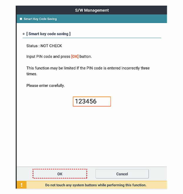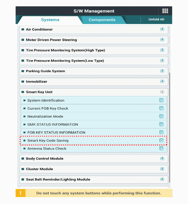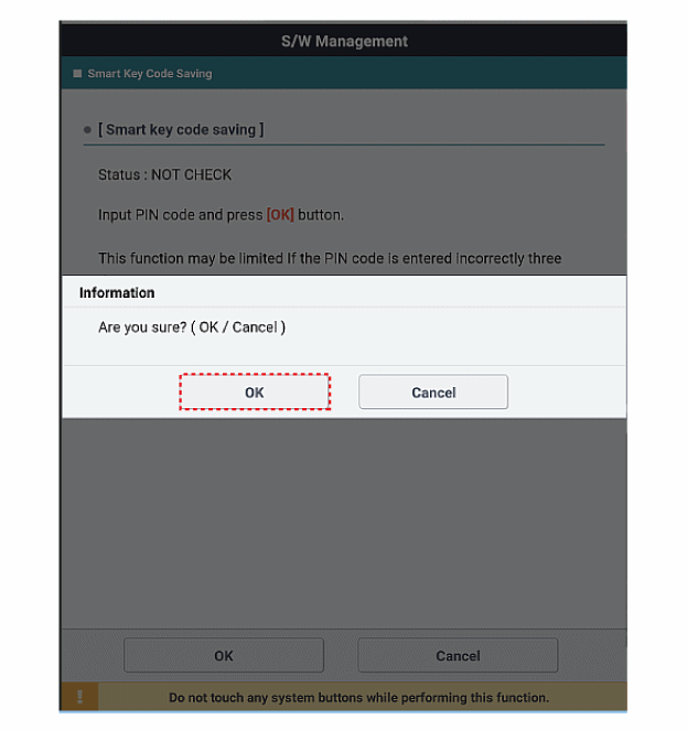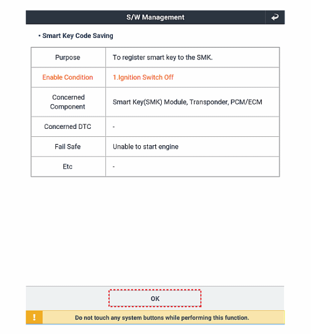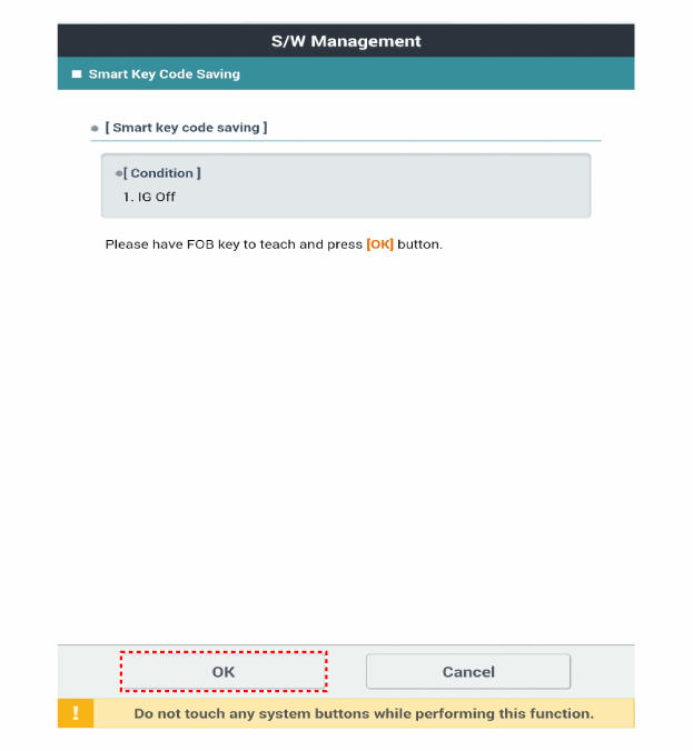 Erst das Fahrzeugmodell und danach die Funktion 'Speichern des Smart-Key-Codes' велен.