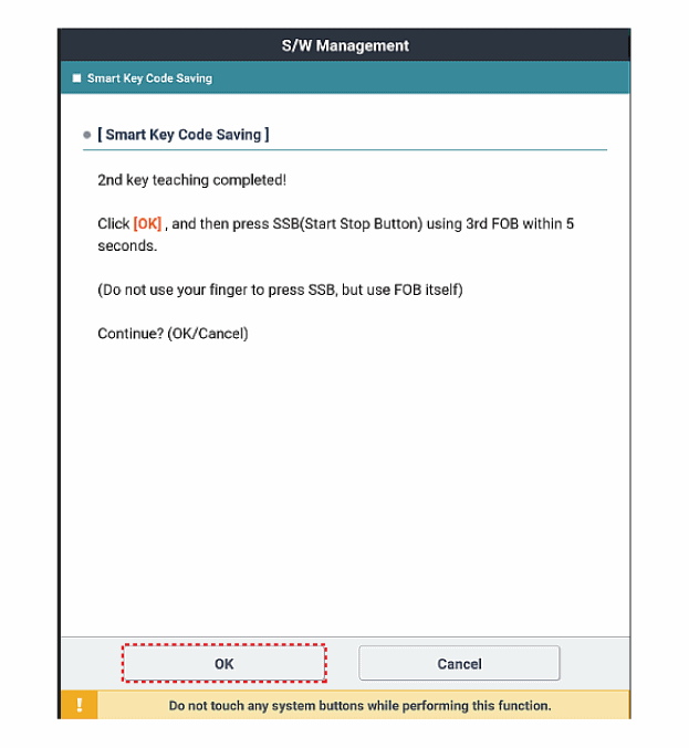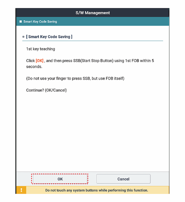 Nach dem Betätigen der Taste "OK" innerhalb von 5 s den SSB mit dem Smart Ключ дрюкен.